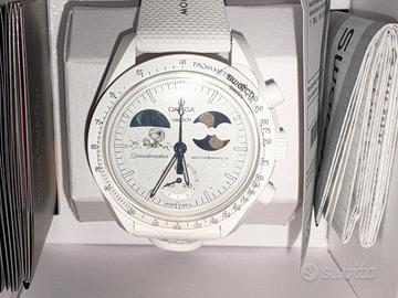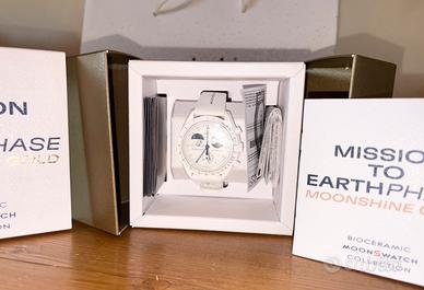 Omega x Swatch Mission to Earthphase - Moonshine Gold. Orologio unico. MISSION TO EARTHPHASE - MOONSHINE GOLD Cold Moon era disponibile dal 4 dicembre 2025, giorno della Luna fredda, fino all'ultimo giorno dell'inverno, il 20 marzo 2026, in tutti i negozi Swatch che vendono la collezione Bioceramic MoonSwatch, in Edizione Limitata. Ogni orologio presenta una incisione laser UNICA per ogni modello, raffigurante un fiocco di neve. ❄️ Orologio non più in vendita. L’orologio è NUOVO E MAI INDOSSATO, completo di tutti i documenti e della confezione assolutamente integra. Pezzo da collezione.