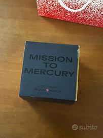 Vendo Omega x Swatch MoonSwatch "Mission to Mercury" originale della Bioceramic MoonSwatch Collection, uno dei modelli più eleganti e richiesti della serie con design scuro e dettagli dorati/gialli ad alta leggibilità.