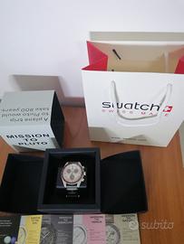 Omega X Swatch Mission To Pluto, Nuovo. Originale. Mai usato. Aperto solo per le foto. Comprende : ✅ Orologio con cassa in Bioceramica e cinturino con strappo regolabile. ✅ Libretto di istruzioni. ✅ Scatola esterna di cartone ✅ Busta Swatch ✅ Libretto con tutti i modelli Omega come in foto. Movimento al quarzo. Modello molto richiesto, perfetto per collezione. 🚚 Spedizione in 24H.