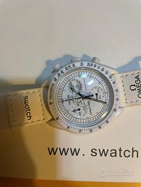 Vendo iconico Omega x Swatch Mission to the Moonphase, la celebre edizione "Snoopy" nella colorazione bianca integrale. L’orologio è un pezzo da collezione che unisce il design dello Speedmaster alla tecnologia Bioceramic di Swatch.