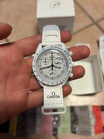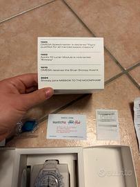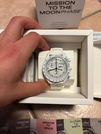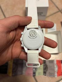 Vendo Omega x Swatch Moonswatch "Mission to the Moonphase (Snoopy edition)" in colorazione bianca. - Condizioni: Nuovo con cartellino - Set completo: include scatola originale, contro scatola e manuale d'uso - Autenticità garantita: Presente lo scontrino originale d'acquisto dello Swatch Store (visibile in foto) e il certificato di garanzia timbrato. 📦spedizione veloce e accurata.