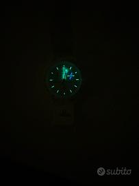 Condizioni pari al nuovo, mai indossato con pellicola protettiva sul quadrante dell’orologio.
