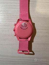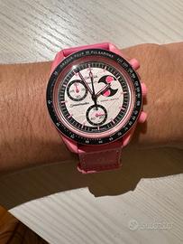 Per celebrare la Luna rosa di aprile, questo cronografo presenta una cassa, una corona e dei pulsanti in Bioceramic rosa e un cinturino