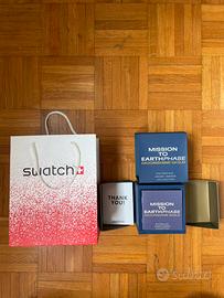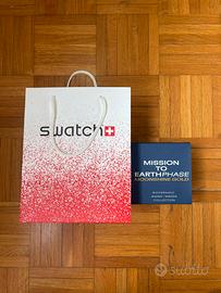 Orologio Swatch x Omega MoonSwatch “Mission to Earthphase – Moonshine Gold” in condizioni pari al nuovo, completo di scatola originale, shopping bag e tutti gli accessori (manuali e booklet). Modello iconico in bioceramica con design ispirato allo Speedmaster. Perfetto per collezionisti o appassionati.