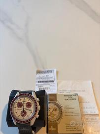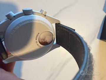 Omega x Swatch MoonSwatch – Mission to Pluto Orologio originale completo di scatola e scontrino (full set). Acquistato in negozio ufficiale Swatch. Condizioni eccellenti, perfettamente funzionante, usato pochissimo. Modello molto richiesto della collezione MoonSwatch, spesso non disponibile in negozio. Cassa in Bioceramic da 42mm, cronografo al quarzo, design ispirato allo storico Omega Speedmaster. Prezzo leggermente trattabile. Scambio a mano o spedizione disponibile.