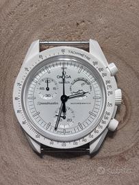 Vendo ricercatissimo Omega x Swatch Moonswatch, modello Mission to the MoonPhase "Full Moon" (Snoopy Bianco). L'orologio è stato acquistato a Giugno 2025 presso lo Swatch Store di Milano C.so Vittorio Emanuele. L'orologio è in condizioni IMPECCABILI, pari al nuovo, senza alcun segno o graffio sulla cassa o sul vetro. Punti di forza di questo annuncio: - Cinturino originale MAI USATO: L'orologio è stato indossato pochissime volte esclusivamente con un cinturino NATO bianco (visibile in foto). Il velcro originale Omega x Swatch è dunque intonso. - Omaggio incluso: Regalo il cinturino NATO bianco che si abbina perfettamente al design "Full Moon" - Full Set: Scatola originale, manuali, certificato di autenticità e garanzia ufficiale Swatch Milano (Giugno 2025). Dettaglio Snoopy: Funzione fasi lunari perfettamente funzionante. Al buio, sotto luce UV, appare la celebre citazione di Snoopy sul disco delle fasi lunari. Lo vendo dato che ho acquistato da poco l’Earthphase Moonshine Gold Cold Moon e sono entrambi bianchi Massima serietà. Disponibile per: - Consegna a mano in zona Milano. - Spedizione rapida e imballaggio accurato.