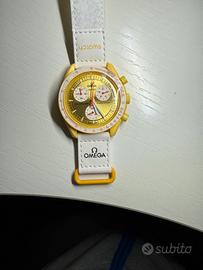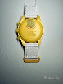 Vendo MoonSwatch Mission to the Sun, collaborazione iconica OMEGA x SWATCH, ispirata allo storico Speedmaster Moonwatch. ๐ Condizioni: Nuovo, mai indossato ๐จ Colore: Giallo acceso, super riconoscibile e luminoso โ Cassa: Bioceramic Swatch โฑ Movimento: Cronografo al quarzo ๐ Diametro: 42 mm ๐ Cinturino: Swatch in Velcro, bianco con dettagli gialli ๐ฆ Spedizione: accetto tutte le linee tranne inpost, che non si trova dalle mie parti la sede