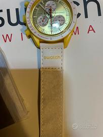 Vendo Omega x Swatch Mission to the Sun, l'esemplare più solare e vivace della collezione MoonSwatch. L'orologio è caratterizzato da una cassa in Bioceramic gialla brillante e un quadrante giallo con finitura spazzolata.