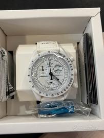 Vendo Omega x Swatch MoonSwatch Mission to the Moonphase Full Moon originale, appena acquistato e mai utilizzato. ✔️ Condizioni: nuovo, mai indossato ✔️ Completo di: scatola originale, scontrino, libretti, confezione Swatch ✔️ Modello: Moonphase “Full Moon” (versione bianca molto richiesta) ✔️ Movimento al quarzo con funzione cronografo + fasi lunari ✔️ Materiale bioceramic leggero e resistente Orologio molto bello e ricercato, perfetto sia per collezionisti che per uso quotidiano. 📍Spedizione disponibile 💬 Contattami per info o altre foto