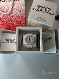 Omega x Swatch Moonswatch "Mission to the Moonphase" (Snoopy Edition) in colore bianco.