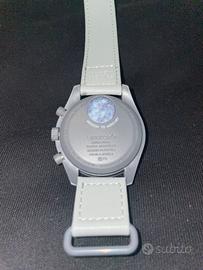 Colore grigio elegante e super versatile, tra i modelli piĂą ricercati della collaborazione Swatch x Omega.