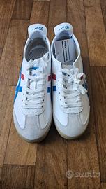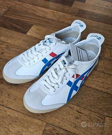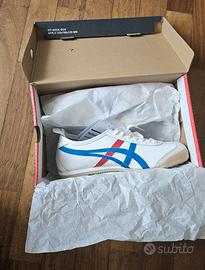 Vendo Onitsuka Tiger Mexico 66 Bianche con strisce blu e rosso ORIGINALI taglia 41,5 per errato numero, comprate in Giappone. La versione asiatica della scarpa ha la taglia mezzo numero più piccola. N.B. Non accetto resi per errato numero.