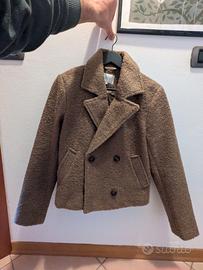 Giacca corta mezza stagione, in boucle, colore cammello. Tipo chiusura: doppia fili bottoni. Scollo a V. Taglia: S. Regular fit.