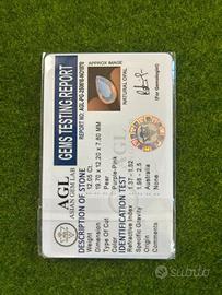 Opale bianco 12.05 ct taglio goccia certificato. Dimensioni 19x12x7 mm. Le sfumature di colore sono: rosa, viola e arancio. La pietra è in perfette condizioni, eccellente taglio e qualità. Provenienza Australia.