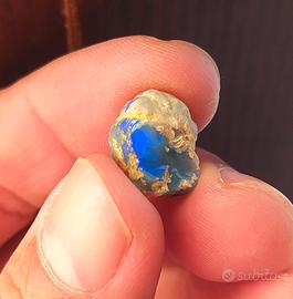 Opale australiano boulder grezzo alla luce si riempie di un blu elettrico fenomenale Una gemma preziosa di oltre 7 carati!!! Provenienza Australia Una bellissima gemma sia per collezione, regalo o per creare un gioiello unico con una pietra spettacolare.