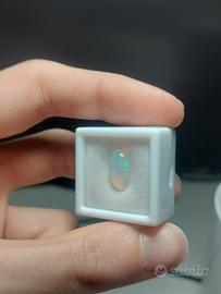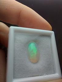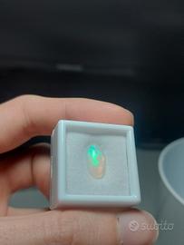Vendo questo bellissimo opale naturale etiope da 2.315 carati. Provenienza: etiopia Dimensione: 13×8.5 mm Peso: 2.315 carati Meglio non bagnare gli opali etiopi.