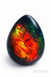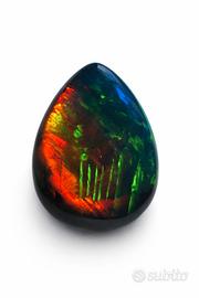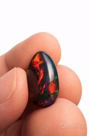 Vendo da collazione Opale nero naturale di forte impatto visivo, caratterizzato da una play-of-color intensa e profonda, con spettacolari accensioni di rosso fuoco, arancio vivo e verde brillante che emergono su un body tone scuro e profondo, quasi un arlecchino! Il contrasto cromatico è marcato e immediatamente percepibile, rendendo questa gemma estremamente scenografica e ricercata. Il taglio cabochon a pera, con cupola piena e ben proporzionata, esalta la profondità dei colori e la tridimensionalità del pattern. Dettagli della gemma (da report IGI): • Specie: Opale naturale • Varietà: Opale nero (Black Opal) • Taglio: Cabochon a pera • Peso: 13,39 carati • Misure: 19,68 × 15,48 × 9,25 mm • Colore e trasparenza: Dark Blue, colori dominanti Green, Orange, Red – Semi-traslucente • Caratteristiche: Inclusioni naturali (pattern) • Fenomeno ottico: Play of color • Trattamento: Smoke treated (come dichiarato sul report) • Certificazione: IGI – International Gemological Institute • Numero report: 756571527 • Data: 26 gennaio 2026 Informazioni aggiuntive: • Opale nero naturale certificato IGI, con trattamento dichiarato • Play-of-color molto accesa, con predominanza di rossi e aranci ad alto contrasto • Spessore importante che conferisce profondità e presenza alla pietra • Ideale per alta gioielleria o per una collezione di opali selezionati • La gemma in foto è esattamente quella in vendita Spedizione e dogana: • Spedizione internazionale • Assicurata e tracciabile • Imballaggio professionale • Certificato IGI incluso • Eventuali dazi doganali, IVA o tasse di importazione sono a carico dell’acquirente Nota: Le fotografie sono reali e scattate con illuminazione professionale. Eventuali lievi variazioni cromatiche possono dipendere dalle condizioni di luce o dal display utilizzato. Un opale nero certificato, potente e magnetico, pensato per chi cerca una gemma di carattere, rara per intensità cromatica e presenza scenica, proposta con totale trasparenza gemmologica.