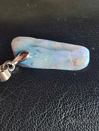 opale pendente pietra colere grigio chiaro/ cole luci azzurro, blu lavorato a mano