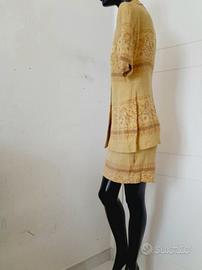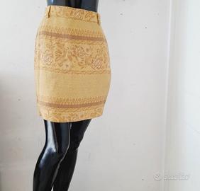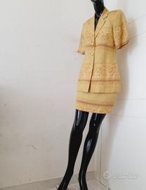 OPTIONS BY BYBLOS Completo 2 pezzi Giacca + minigonna, lino e cotone, doppia fantasia, senape/giallo/beige/marrone, bottoni giallo/oro, tg.40 S donna.