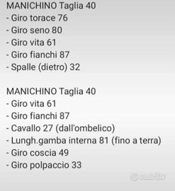 GIACCA monopetto 3 bottoni, maniche 3/4, 2 tasche, sciancrata, foderata parte alta. Lunghezza 70, spalle 41 ( leggermente imbottite), colletto 8, maniche 27, torace 46, vita 39, fianchi 46.