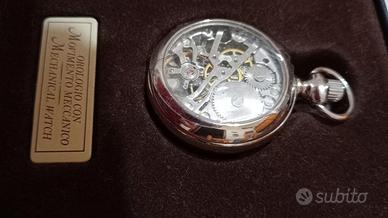 bellissimo orologio con movimento.meccanico, visibile attraverso l'apertura centrale.Un modello classico in elegante madreperla bianca iridescente.