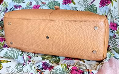 Con i suoi spaziosi scomparti interni, il baulotto Boxy color mandorla ospita tutto ciò di cui abbiamo bisogno nelle giornate fra ufficio e tempo libero. Ideale con un look casual o un outfit più formale, può essere sfoggiata a mano o cross-body con la tracolla .