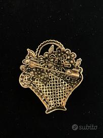 Particolari orecchini genere retrò. In metallo placcato oro e strass multicolore. Misure: 2,8x2,8 cm
