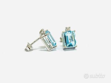 Orecchini con acquamarina taglio smeraldo 3.40 ct e diamanti 0.10 ct in oro bianco 18 kt fatto in Italia