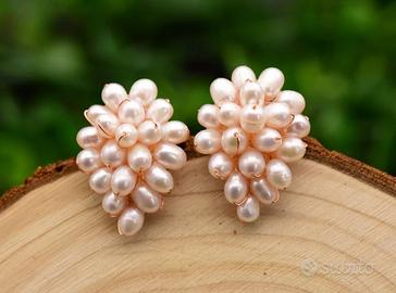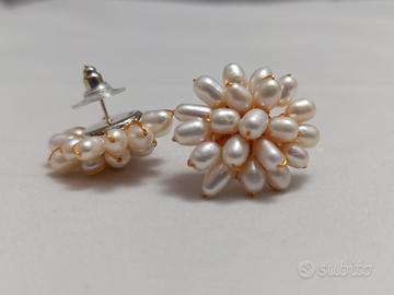 Orecchini a bottone fatti a mano con perle bianche naturali d'acqua dolce. Spediamo in tutta Italia