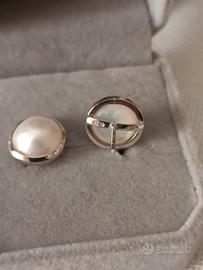 Orecchini a bottone in oro bianco 750 e perla vera senza le farfalline ...
