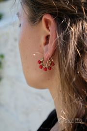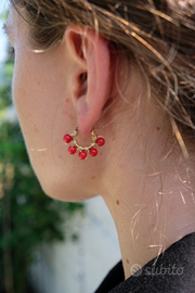 Orecchini a cerchio con perle di corallo bamboo rosso realizzati a mano da me