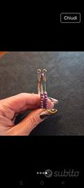 Bellissimi orecchini a cerchio con piccole perle viola, perfetti per aggiungere un tocco di stile a qualsiasi outfit. Come mostrato in foto, i ganci sono leggermente usurati, ma ciò non compromette l'utilizzo dell'articolo e la bellezza dell'articolo.