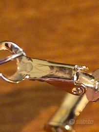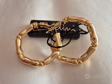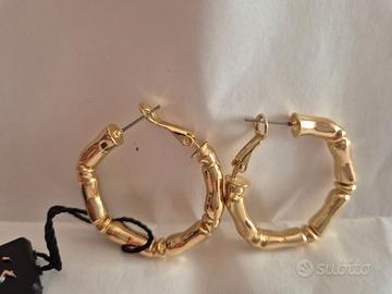 Vendo orecchini a cerchio in metallo d'orato, anallergici, scritta Sodini nella chiusura, di diametro cm 3,3. Nuovi mai indossati.