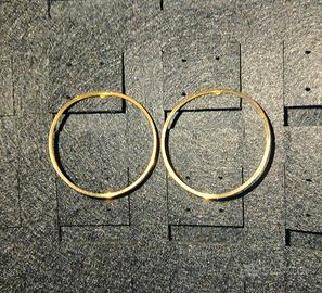 Linea sottile e pulita, forma leggermente svasata che li rende diversi dai soliti cerchi perfettamente tondi. Diametro 2,7 cm.