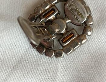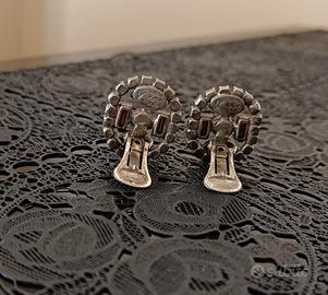 Coppia di orecchini a clip, bigiotteria vintage fine anni '80, prodotta da Dueci Bijoux (vedi foto 3), con fine lavorazione artigianale, con strass e perline su metallo. Dim. cm. 2, 8 x 2,2. Usati pochissimo ed in ottime condizioni. N.B.: la nuance rosa è dovuta solo alla foto.