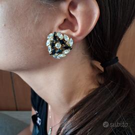 Stupendi orecchini a clip con zirconi bianchi e pietre nere. Bigiotteria d'effetto, per qualsiasi occasione.