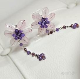 Particolari orecchini con chiusura a clip e pietre naturali: quarzo rosa e ametista. Realizzati a mano. Adatti sia per chi ha i lobi forati che per chi non ce li ha. Gli orecchini sono nuovi, mai indossati. Non si effettuano consegne a mano.