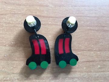 Vendesi simpaticissimi orecchini a clip a forma di macchinina, laccati neri/rossi. Ottima fattura di bigiotteria. Proprietà privata. Condizione: nuovi