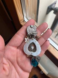 Orecchini pendenti con chiusura a clip e applicazioni di pietre color azzurro, arancione, perla. In perfette condizioni.