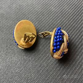 Vendo degli orecchini con Clip formati da perline blu ed un originalissimo intreccio dorato.
