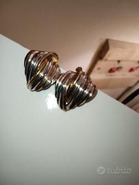 orecchini a clip vintage caratterizzati da un design a vortice con tonalità miste oro e argento.design è caratterizzato da una struttura a "nodo" o "torchon" con coste orizzontali alternate in tonalità anni 80 in argento peso 8 grammi tutti punzone