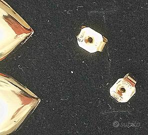 Orecchini a lobo a forma di cuore bombato, in argento 925 dorato, placcatura al rodio in oro giallo. Chiusura con farfallina. Dimensioni: 1,5 cm.