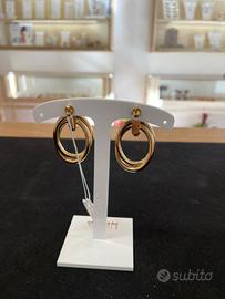 Eleganti orecchini a lobo con pendente a doppio cerchio ovale intrecciato. Un design classico ma di grande impatto, perfetto per illuminare il viso.