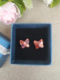 Orecchini a perno, per lobi forati, in acciaio chirurgico anallergico, con cristalli Swarovski a forma di farfallina. Misura del cristallo circa 10x9mm.
