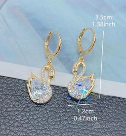 Solo insieme a altri articoli Orecchini a forma di cigno con finitura dorata e dettagli luminosi. - Design a forma di cigno. - Incastonati con strass. - Chiusura a scatto per una facile indossabilità. La dimensione sulla terza foto Nuovi mai indossati