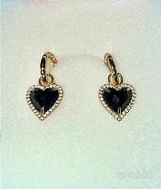 Orecchini a forma di cuore color Neri e oro, realizzato da Le Scritte (Made in Italy) è in argento colorato in oro, pietre trasparenti e nere.
