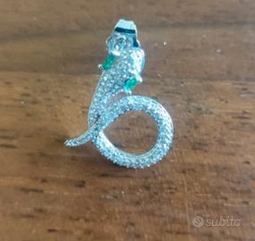 Orecchini a forma di serpenti avvolti in cerchio, decorati con pavé di zirconi bianchi e pietre verdi per gli occhi. Nuovi mai usati
