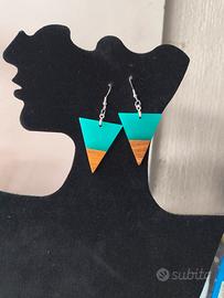 Bellissimi orecchini a forma di triangolo. Sono realizzati con resina color verde acqua e legno color marrone. Gli orecchini sono nuovi e perfetti per aggiungere un tocco di stile al tuo look.