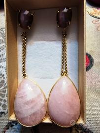 Orecchini a goccia in quarzo rosa