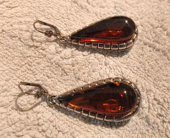 orecchini made home pendenti a goccia in tonalità ambra con montatura color argento